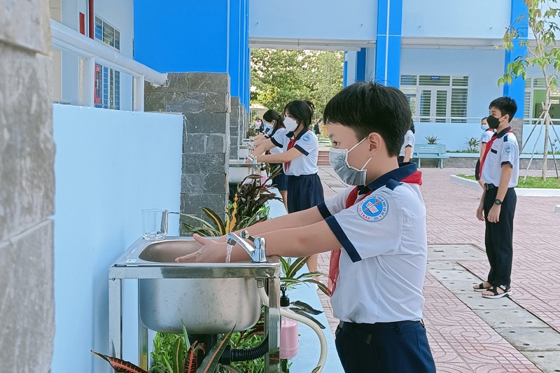 Cụ thể tại Trường THCS Thị trấn (huyện Củ Chi, TPHCM), theo thầy Nguyễn Ngọc Tú – Hiệu trưởng nhà trường, tỷ lệ học sinh các khối đi học trực tiếp tại trường ngày 10/1 đạt trên 90%. “Tuần này nhà trường cho học sinh khối 9 làm kiểm tra học kỳ I và học sinh khối 7, 8 ôn tập trực tiếp. Tuần sau, học sinh khối 7, 8 sẽ làm bài kiểm tra học kỳ trực tiếp… theo đúng lịch của phòng GD&ĐT. Bên cạnh đó, trường cũng bố trí các thiết bị rửa tay, khử khuẩn… ở những khu vực phù hợp và sắp xếp học sinh ngồi ở vị trí cố định để phòng khi có trường hợp F0 thì dễ dàng khoanh vùng xử lý theo yêu cầu của ngành y tế” – thầy Nguyễn Ngọc Tú chia sẻ.